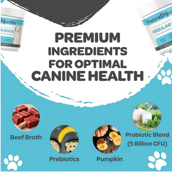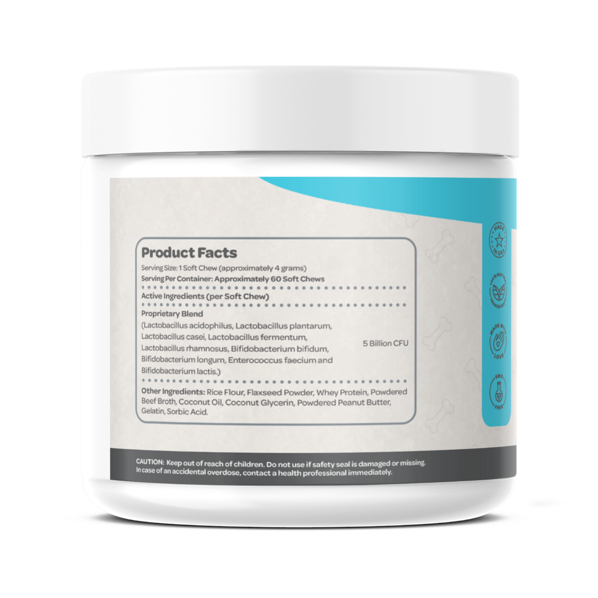 Support your dog's digestive health with our Regular Dood Soft Chews. Formulated with a powerful prebiotic and probiotic supplement for dogs, made of a proprietary blend containing 5 Billion CFU, these chews help maintain a balanced gut microbiome, promoting optimal digestion, nutrient absorption, and immune function. Ideal for dogs with sensitive stomachs, occasional digestive upset, or those transitioning to a new diet, these tasty soft chews make daily gut health support easy and enjoyable.